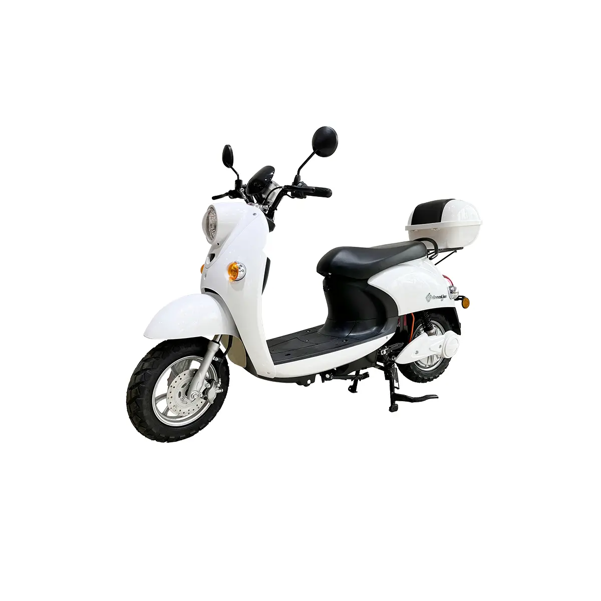 STOCK DISPONIBLEMoto Eléctrica con diseño retro moderno. Batería premium de plomo ácido con Grafeno 60V/22.3Ah, motor 1000W, velocidad máxima 43km/h y autonomía 50 – 60 km. Posee llantas de 90/90 – 10, luces intermitentes y posapié para copiloto. Elegante diseño de estilo retro moderno, está disponible en colores: Beige, blanco, gris, negro y verde. Este vehículo cuenta con un cómodo asiento de espuma y práctica cajuela. Además, tiene una amplia guantera bajo el asiento con función de apertura desde la chapa principal, para mayor funcionalidad tiene gancho con guantera y puerto USB.